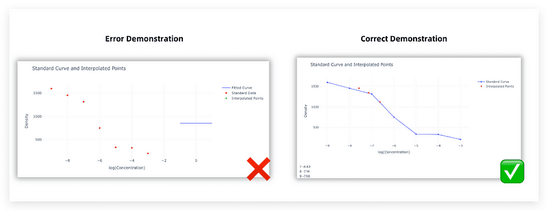 Visualization should clearly distinguish interpolated points from the standard curve.