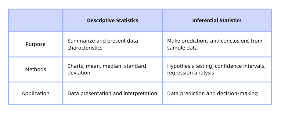 ▶︎ Foundation: Descriptive statistics provide a basic overview of the data, serving as the starting point for inferential analysis.