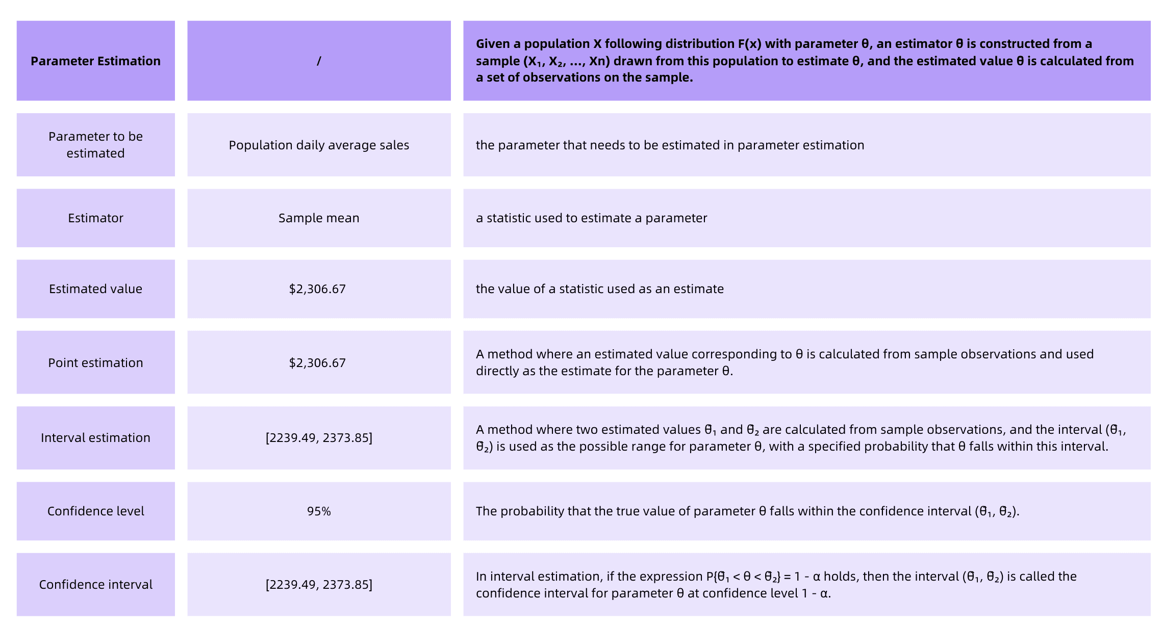 In today’s installment, we will first delve into parameter estimation. We will start by understanding the definition and objectives of parameter estimation. Then, we will work step-by-step through a specific example involving the estimation of the average sales parameter for a coffee shop’s sales data. Finally, we will reinforce the parameter analysis by incorporating related concepts and definitions through practical examples.