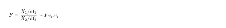 If X₁ ~X²₍𝑑𝑓₁₎ and X₂~X²₍𝑑𝑓₂₎, and ( X₁ ) and ( X₂ ) are independent, then the random variable F(x) can be expressed as: