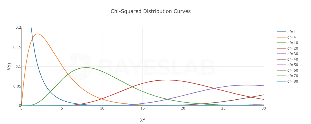 Additionally, the Chi-Squared distribution is additive. In other words, if X₁ ~ X²₍𝑑𝑓₁₎ and X₂ ~ X²₍𝑑𝑓₂₎, then (X₁ + X₂) ~ X²₍𝑑𝑓₁₊𝑑𝑓₂₎.